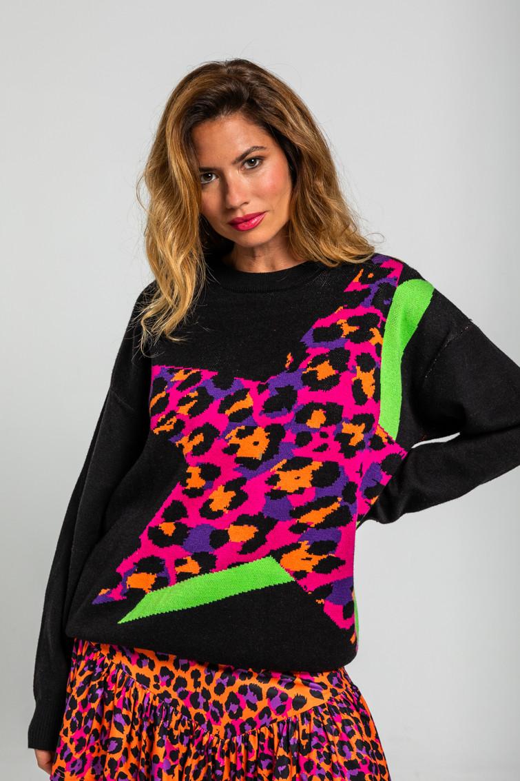 Suéter Oversize De Estampado De Estrellas Con Animal Print - Shiny Girl de la marca lolina