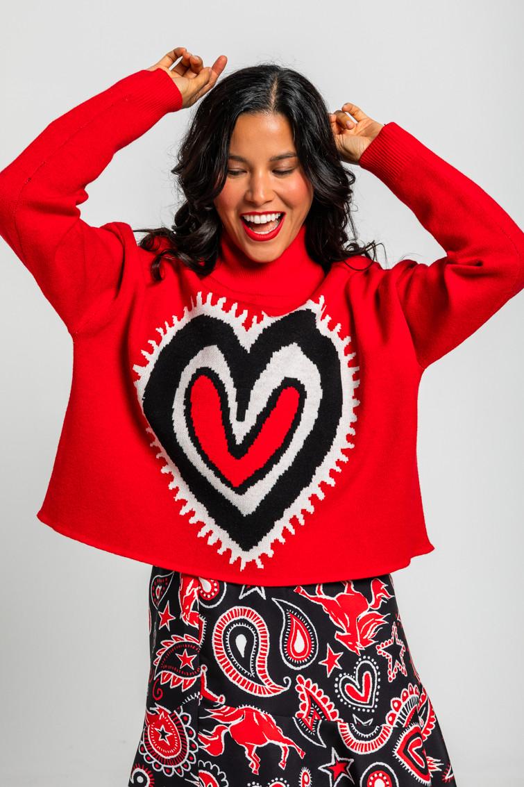 Suéter Crop Rojo Con Con Corazón Estilo Paisley Cachemir - Alma Libre de la marca lolina