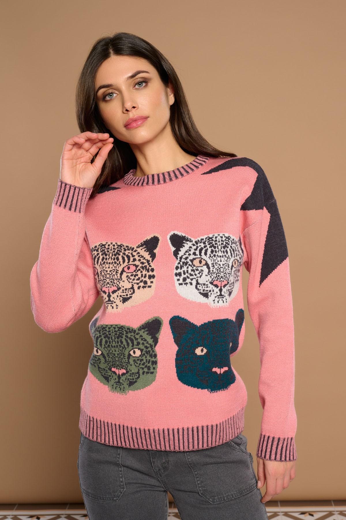 Jersey de punto con cuello redondo y manga larga. Cuello, cintura y mangas en rib. Estampado guepardo.