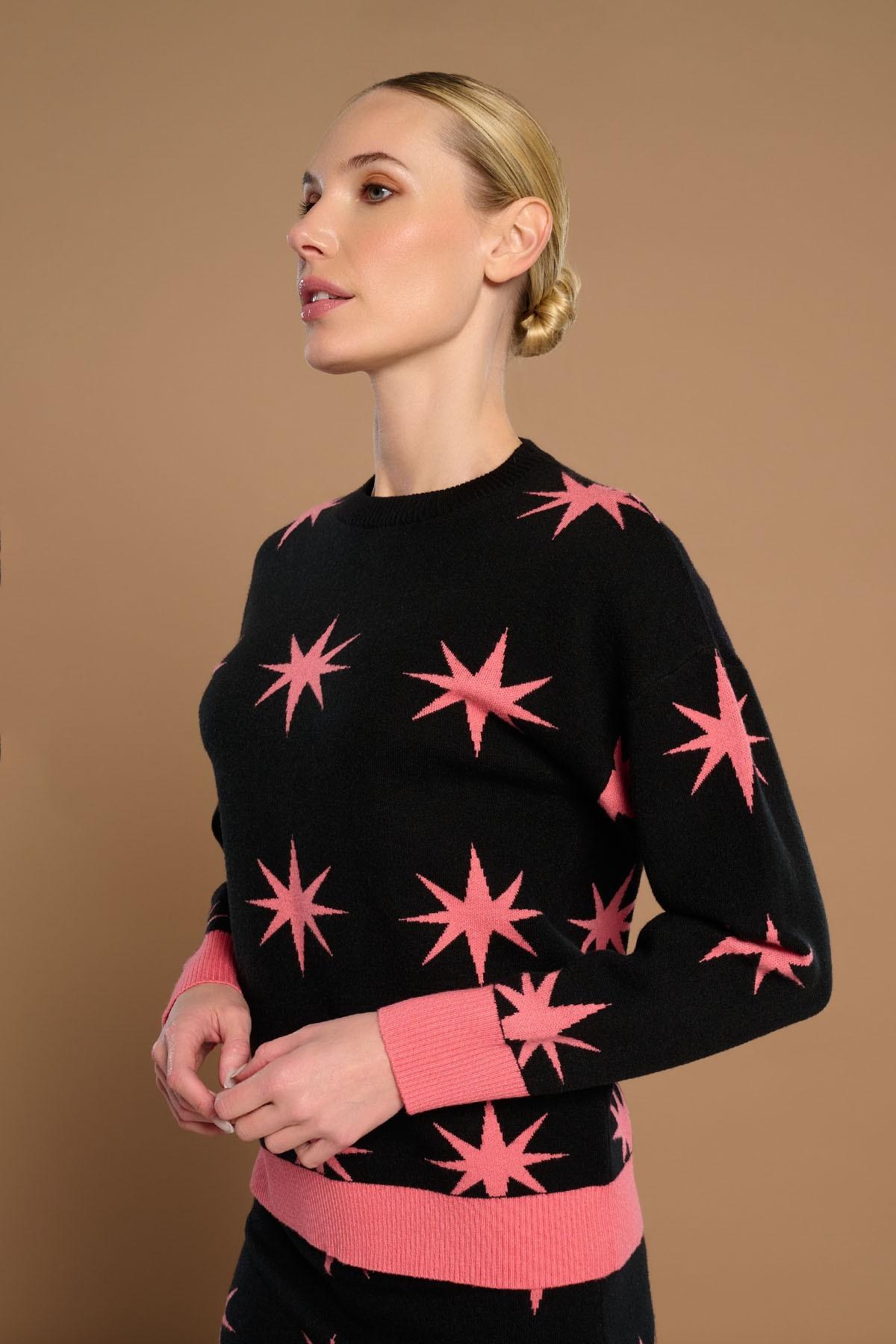 Jersey de punto con cuello redondo y manga larga. Cuello, cintura y mangas en rib. Tejido elástico. Estampado estrellas.