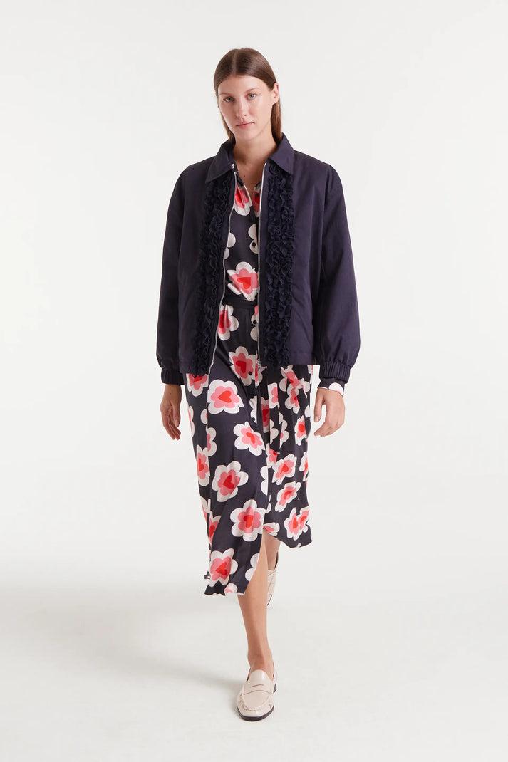 Vestido largo con estampado Sweetheart. Cuello con solapa y manga larga. Cierre frontal con botones y cintura lazada. La modelo mide 177 cm y lleva la talla S.